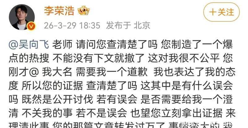 合法李荣浩维权话题繁荣昌盛的时候,资深作词东说念主吴向飞不测干预,把这场理当维权的事情搞得有点复杂了。