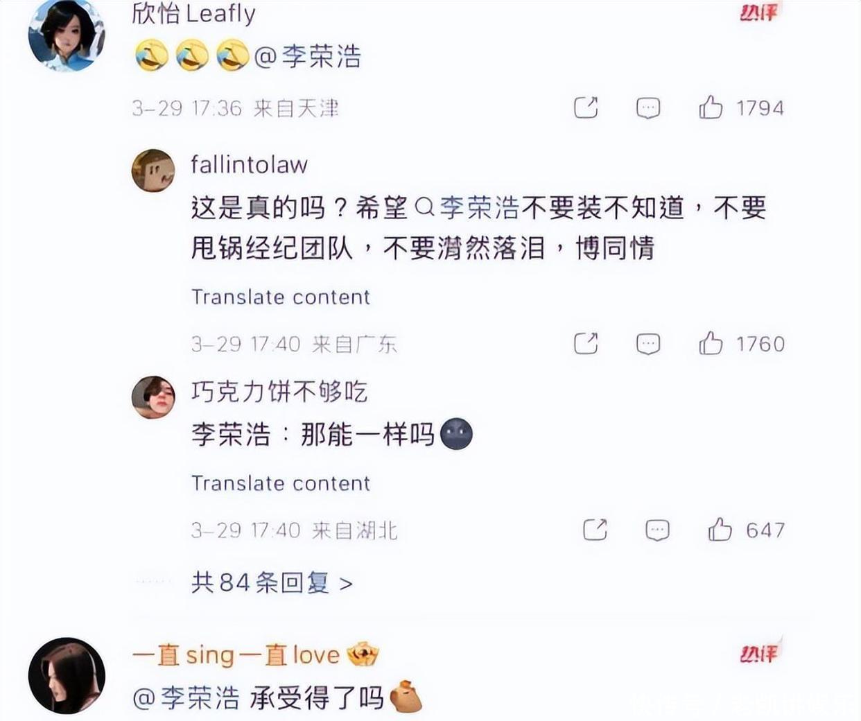 在维权发文后,险些全网齐在力挺李荣浩。
