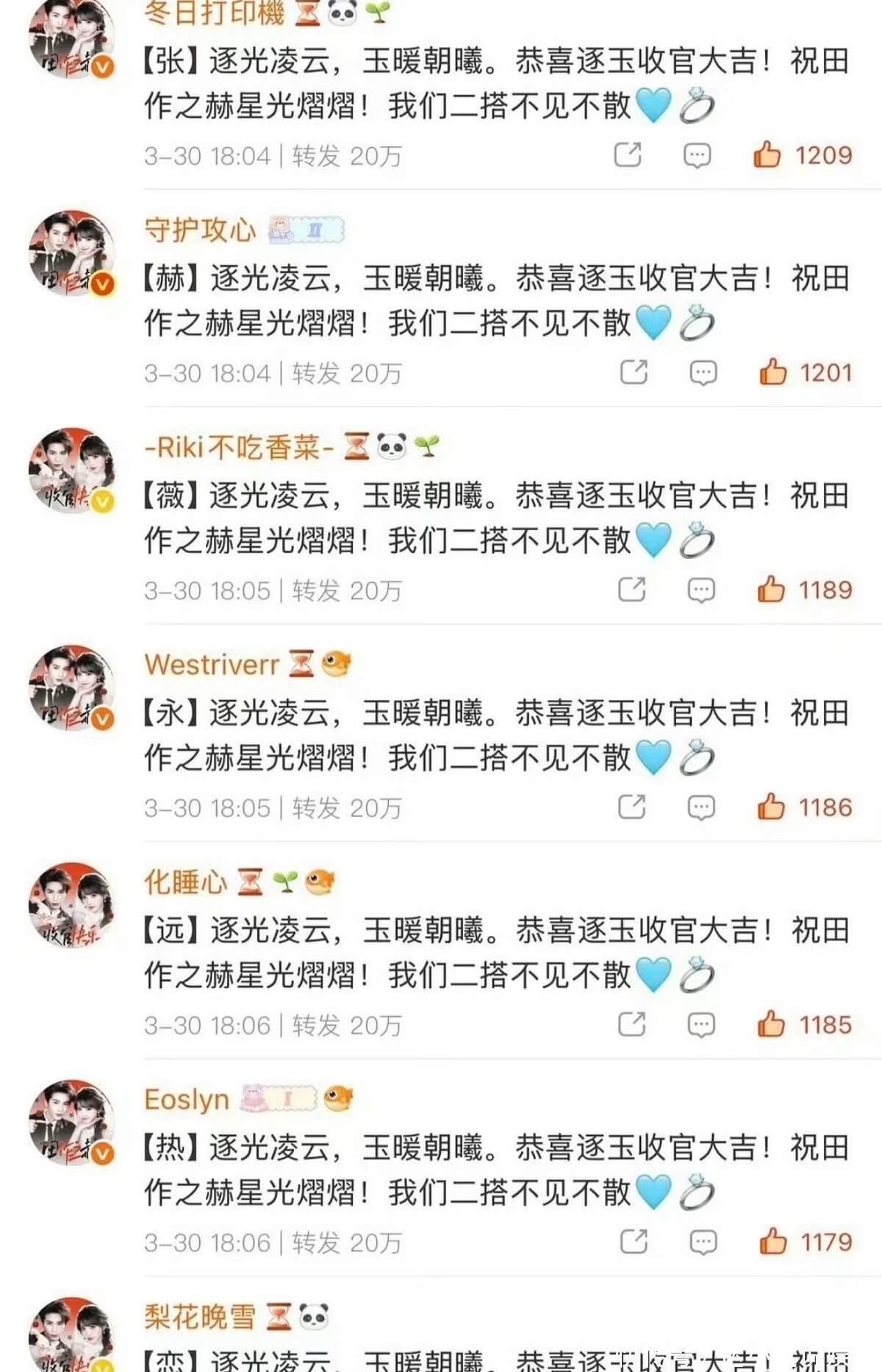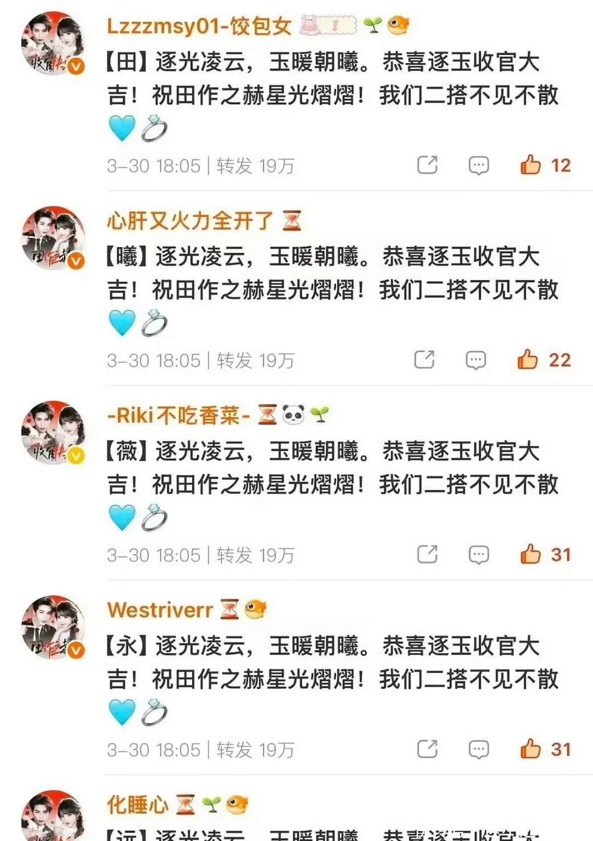 而田作之赫的CP粉,也冲了张凌赫收官文的转发区!