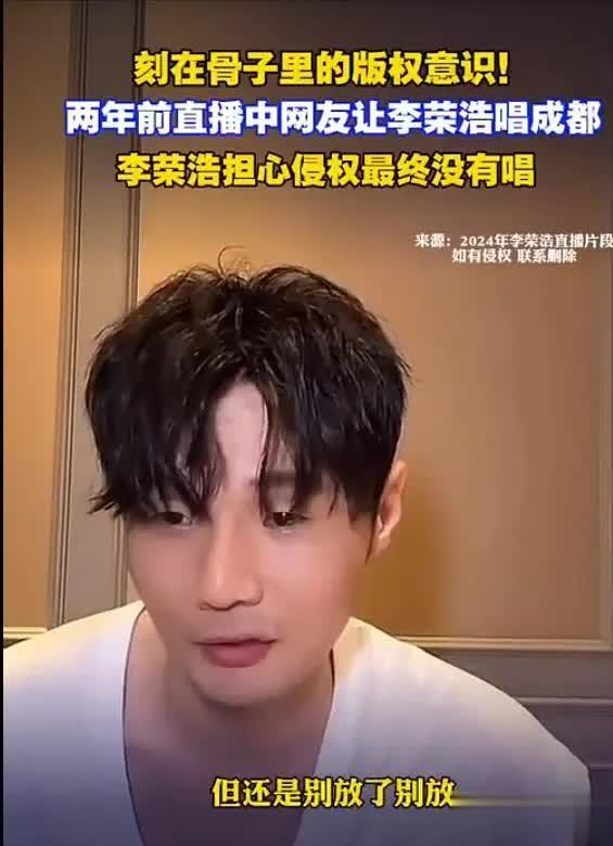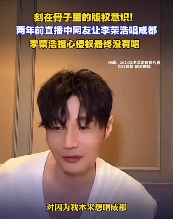 早在献艺前,单依纯团队就向李荣浩方恳求过翻唱授权,却被明确婉拒。中国音乐著述权协会随后发函,平直定性这是 “强行侵权”。可即便如斯,《李白》的旋律照旧在万东说念主场馆里响起,像一记耳光,打在了原创者的心上。 更让东说念主唏嘘的是,2024 年李荣浩直播时,粉丝刷屏点唱赵雷的《成都》。他第一反馈不是开唱,而是反复追问责任主说念主员:“能播吗?有授权吗?” 哪怕责任主说念主员说 “应该不错”,他如故飞舞叫停伴奏,一句都没唱。