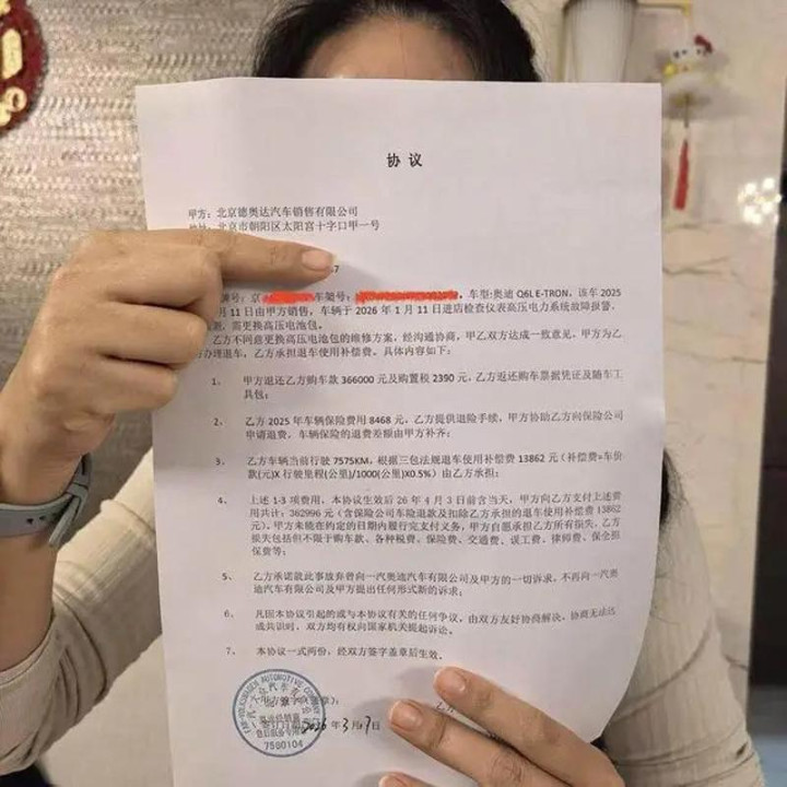 刚买的新动力车,提车仅10天就故障频发,3个月内竟抛锚3次!北京孙女士遭逢的这仍是验,让她产生的退车的念念法。近日,在媒体的柔柔下,事情终于有了推崇,这究竟是奈何一趟事? 事情经过 2025年9月9日,孙女士在北京某奥迪4S店挥霍约38万元,购买了一汽奥迪新动力汽车Q6L e-tron(2026首发领航版)。然则,提车后仅10天,车辆便运转常常出现故障。在短短3个月内,车辆累计出现电力系统故障、充电故障、智驾系统弥远运行不踏实、网罗/语音故障等8次以上问题,致使3次抛锚,让孙女士不敢再不息驾驶。