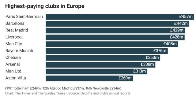 误解一:英超最有钱?在朱门鸿沟,这句话老到废话。 英超举座经济体量举世第一,转会总支出也常常抵上其他四大联赛之和,这齐是事实。但必须指出,在最顶尖朱门的鸿沟,英超不仅竞技实力对比“皇萨仁黎”常常处于下风,就比钱,英超朱门时常亦然相对“费力”的阿谁。 德勤司帐师事务所的数据明摆着。2024-25赛季资产联赛,皇萨仁黎循序占据前4名。英超“六强”则包揽了5-10名。如斯座席,与英超的竞技实力和球星档次相等吻合:一流但并非最顶尖。最佳的俱乐部和最佳的球员简直从来不在英超,但英超领有最广阔的“一流不顶尖”强队矩阵,以及“一流不顶尖”球星矩阵。正因此,最近13年,英超只拿过3个欧冠冠军,西甲则7次捧起大耳杯。 频年,曼城以至利物浦曾经置身资产联赛四强,但那要么依托于欧冠极佳战绩带来的丰厚奖金,要么是在受到疫情影响的非平素年份。而欧陆四大眷属的营收水平,大宗对欧冠奖金的依赖度较着低上好多。 在最体现朱门价值也最褂讪可靠的营业营收板块,皇马面对6亿欧元,巴萨5亿多,拜仁4亿多,英超六强基本齐在3亿档次。简言之,皇马每年齐比英超朱门多挣“三四个埃基蒂克”。 欧陆四大朱门有钱,也肯费钱。巨擘大家指出,考量球队实力的一大雄伟倡导是工资水平。敲黑板:4支惨败出局的英超球队,除热刺外,其余3支齐是输给了工资水平更高的球队。纽卡斯尔联比巴萨工资低,B体育这谁齐猜得回。然则,没错,下图可见,切尔西养了那么多球员,工资还是比巴黎低,曼城坐拥国度成本,工资也还是比皇马低。